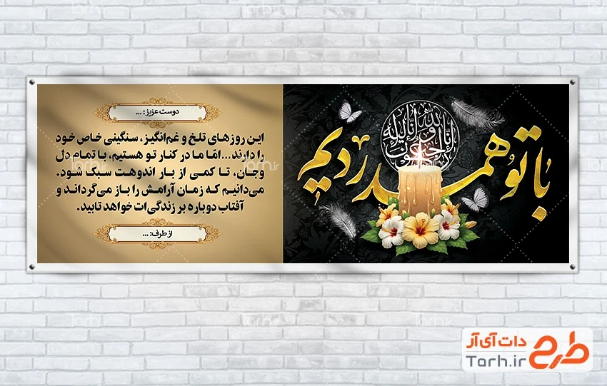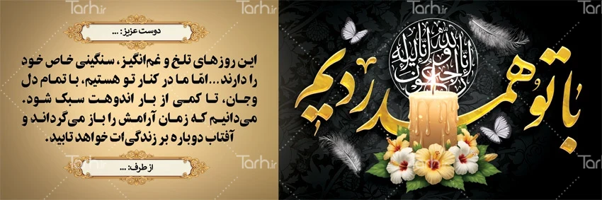 دانلود طرح پلاکارد تسلیت مرحوم با خوشنویسی با تو همدردیم کد فایل 2309614