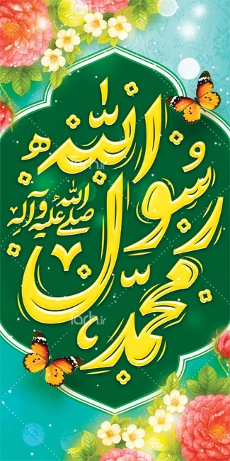 طرح لمپوست خام عید مبعث با خوشنویسی محمد رسول الله کد فایل 2309758