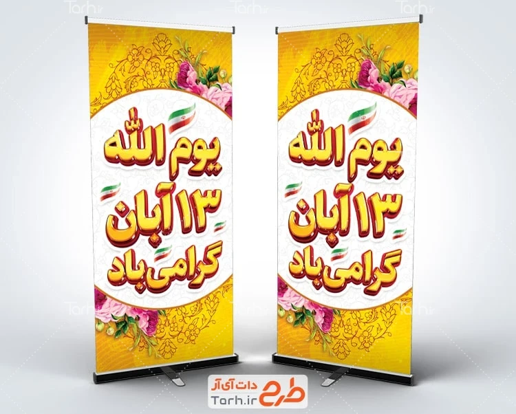 طرح بنر استندی روز دانش آموز با متن یوم الله 13 آبان گرامی باد کد فایل 2340951