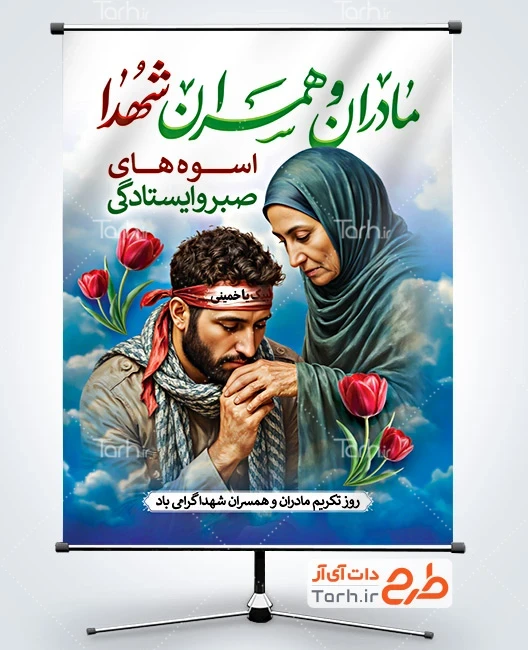 طرح آماده بنر روز تکریم مادران و همسران شهدا با تصویرسازی مادر و شهید کد فایل 2349560