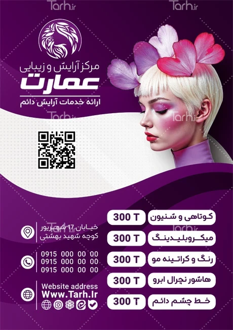 تراکت خام آرایشگاه بانوان با قابلیت ویرایش المان ها کد فایل 2354170