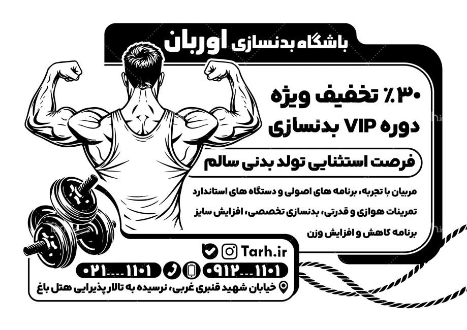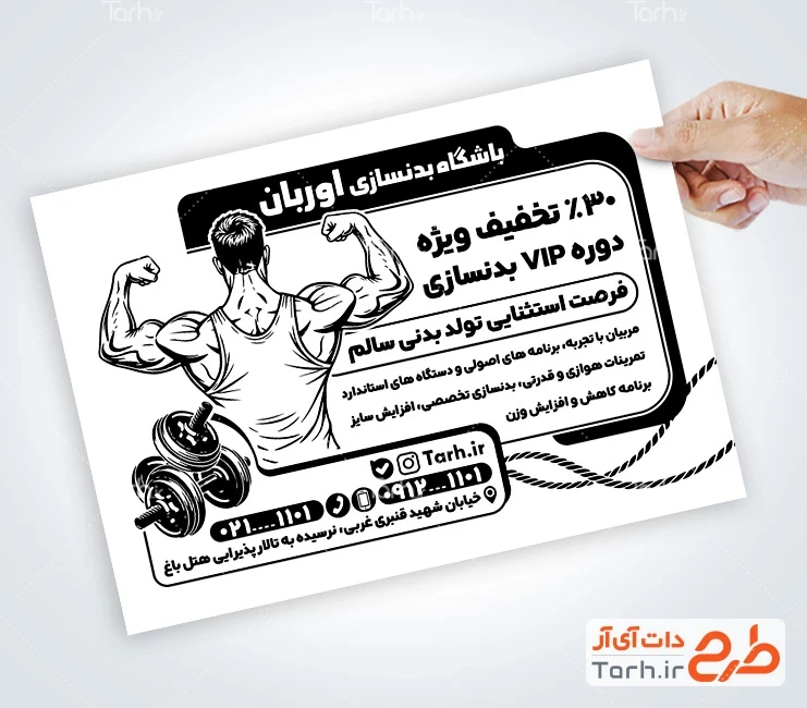 ابعاد قابل چاپ طرح تراکت سیاه سفید باشگاه بدنسازی و کاربرد آن