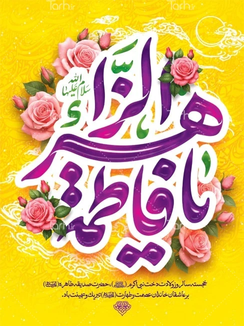 پوستر خام ولادت حضرت فاطمه با تایپوگرافی یا فاطمه الزهرا کد فایل 2376450