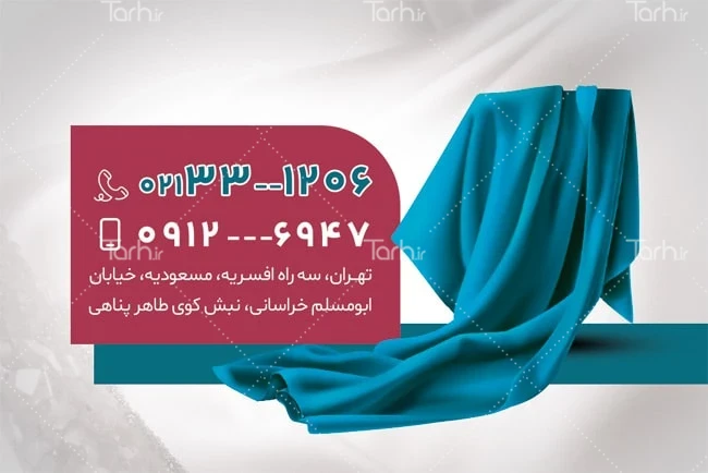 کارت ویزیت تبلیغاتی پارچه فروشی با فرمت psd و قابل ویرایش در نرمافزار فتوشاپ بهصورت لایه باز و پشت و رو (دو رو) توسط تیم طراحان طرح دات آی آر طراحی شده است. طرح کارت ویزیت فروش پارچه از تصاویر و المانهای باکیفیت و متناسب با استاندارد چاپ استفادهشده، همچنین نکات مهم در طرح کارت ویزیت مانند رنگبندی، رعایت حاشیه، فاصلهها، فضای کافی برای درج متن، سایز و نوع فونت مناسب طراحی کارت ویزیت و ... رعایت گردیده است. نمونه کارت ویزیت فروشگاه پارچه شامل عکس پارچه و متن تبلیغاتی پارچه فروشی میباشد که المانهای استفادهشده در طرح خام کارت ویزیت پارچه فروشی قابلیت ویرایش، جابهجایی و تغییر سایز را دارا بوده و شما میتوانید متناسب باسلیقه خودتان کارت ویزیت لایه باز پارچه فروشی را ویرایش نمایید، همچنین با تغییر تصاویر و متنها میتوانید طرح کارت ویزیت پارچه فروشی را به طرح کارت ویزیت کسب و کار مد نظر خود شخصی سازی نمایید.