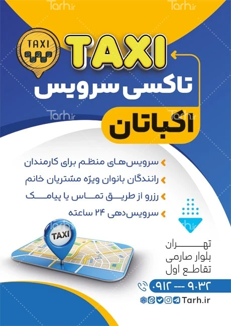 پوستر خام تاکسی تلفنی با فرمت psd و قابل ویرایش در نرمافزار فتوشاپ بهصورت لایه باز توسط تیم طراحان طرح دات آی آر طراحی شده است. در نمونه تراکت تاکسی از تصاویر و المانهای باکیفیت و متناسب با استاندارد چاپ استفادهشده، همچنین نکات مهم در طرح تراکت لایه باز تاکسی تلفنی مانند رنگبندی مشکی طلایی، رعایت حاشیه، فاصلهها، فضای کافی برای درج متن، سایز و نوع فونت مناسب طراحی تراکت و ... رعایت گردیده است. طرح لایه باز تراکت آژانس شامل عکس نقشه میباشد که المانهای استفادهشده در طرح تراکت تاکسی تلفنی قابلیت ویرایش، جابهجایی و تغییر سایز را دارا بوده و شما میتوانید متناسب باسلیقه خودتان تراکت لایه باز تاکسی سرویس را ویرایش نمایید، همچنین با تغییر تصاویر و متنها میتوانید طرح تراکت آژانس را به طرح تراکت کسب و کار مد نظر خود شخصی سازی نمایید.