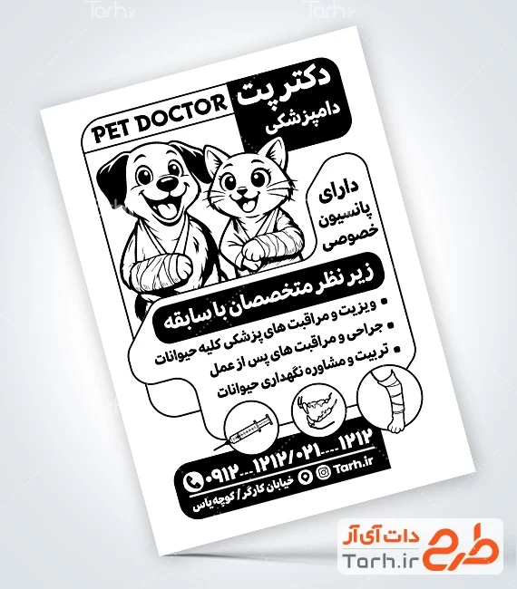 ابعاد قابل چاپ طرح تراکت سیاه سفید دامپزشکی و کاربرد آن