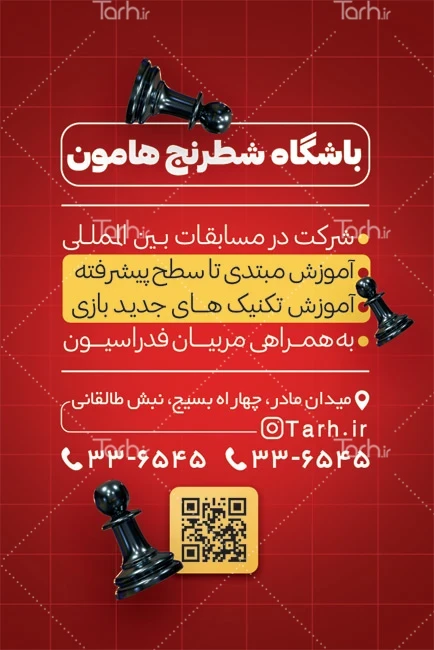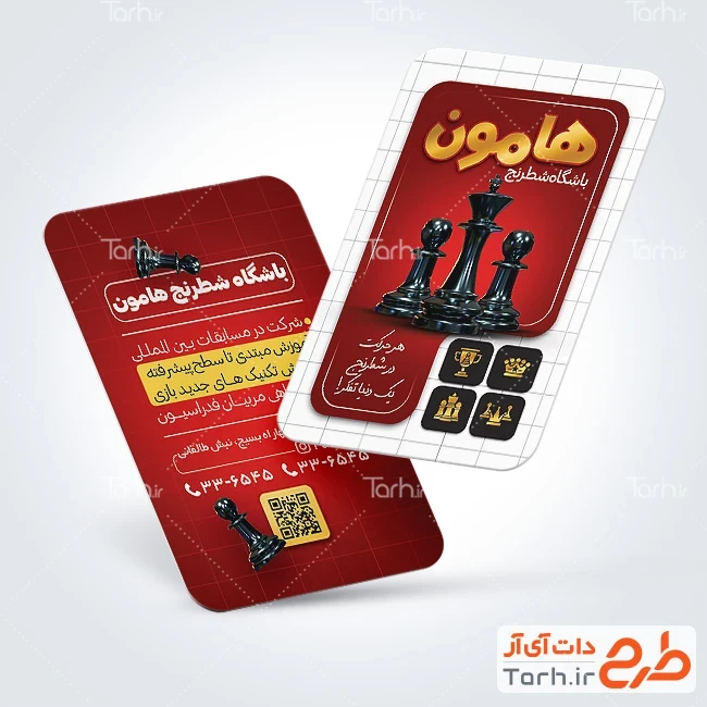 طرح کارت ویزیت تبلیغاتی آموزشگاه شطرنج دارای رنگبندی قرمز کد فایل 2470691