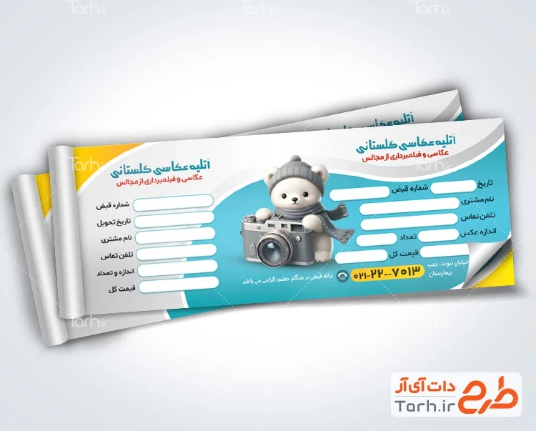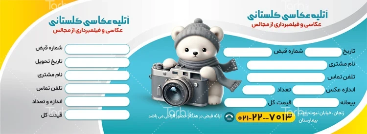 طرح قابل ویرایش قبض آتلیه عکس و فیلم شامل وکتور خرس عکاس کد فایل 2480731