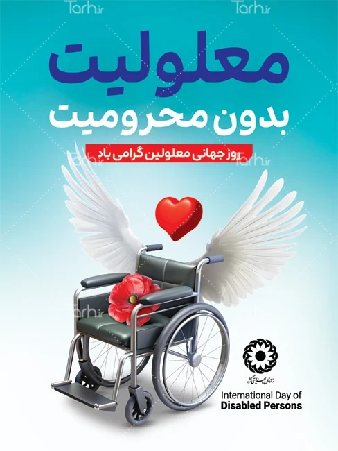 دانلود طرح پوستر روز جهانی معلولین با فرمت psd و قابل ویرایش در نرم افزار فتوشاپ به صورت لایه باز توسط تیم طراحان طرح دات آی آر طراحی شده است. در طرح بنر تبریک روز جهانی معلولین از تصاویر و المان های با کیفیت و متناسب با استاندارد چاپ استفاده گردیده است. طرح پوستر روز جهانی معلولین شامل متن معلولیت، تصویرسازی ویلچر و پر می باشد که المان های استفاده شده در طرح لایه باز بنر روز معلولین قابلیت ویرایش، جابه جایی و تغییر سایز را دارا بوده و شما می توانید متناسب با سلیقه خودتان طرح روز جهانی معلولین را ویرایش نمایید.