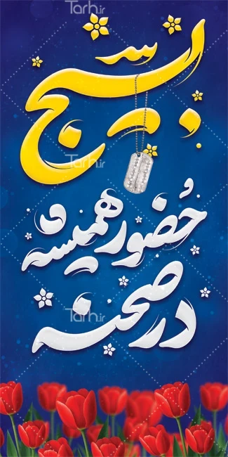 طرح بنر شهری تبریک هفته بسیج با تایپوگرافی بسیج حضور همیشه در صحنه کد فایل 2504139