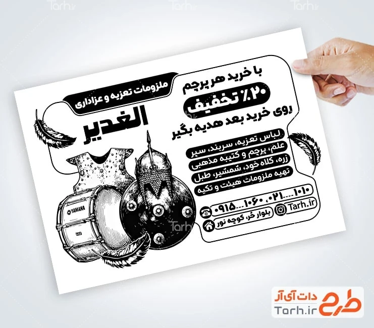 ابعاد قابل چاپ طرح تراکت سیاه سفید تجهیزات تعزیه و کاربرد آن