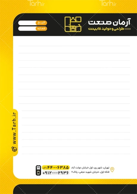 تمامی حقوق برای Tarh.ir محفوظ است. خریدار محترم شما فقط اجازه چاپ طرح فوق را دارید. هرگونه انتشار، بازنشر، فروش و یا هدیه فایل به دیگران غیرقانونی و غیرشرعی بوده و بصورت قانونی پیگیری می گردد. قوانین سایت