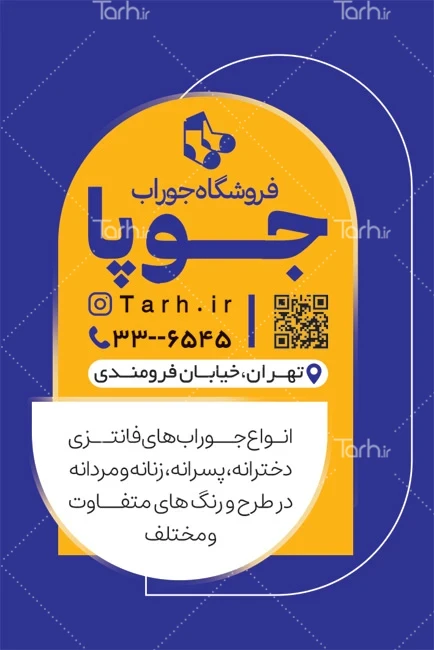 ابعاد طرح لایه باز کارت ویزیت فروش جوراب در جدول ویژگیهای فایل درجشده و با توجه به لایه باز بودن و کیفیت بالای طرح جوراب فروشی، قابلیت ویرایش و تبدیل به سایز دلخواه مانند کارت ویزیت مربع، دایره، برش خاص، قالب اختصاصی و ... را دارا میباشد. کارت ویزیت خام جوراب فروشی قابلیت چاپ افست و چاپ دیجیتال روی انواع جنس کارت ویزیت مانند گلاسه، لمینت، کتان، کرافت، سلفون و پیویسی و ... را دارد. همچنین میتوان از طرح های کارت ویزیت جهت چاپ اتیکت، لیبل، کارت آویز و ... نیز استفاده کرد.