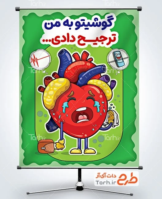 ابعاد طرح بنر مضرات موبایل برای قلب در جدول ویژگی های فایل درج شده و با توجه به لایه باز بودن و کیفیت بالای دانلود بنر نکات آموزشی پیشگیری از بیماری، قابلیت ویرایش و تبدیل به سایز دلخواه و همچنین چاپ در ابعاد و متریال های مختلف (کاغذ، بنر و ...) را دارا می باشد. همچنین می توان با ویرایش، بنر لایه باز سلامت اندام های داخلی بدن را به سایز قالب شبکه های اجتماعی تبدیل نمود. برای مثال بنر لایه باز سلامت اندام های داخلی بدن در ابعاد 30 در 40 سانتیمتر رزولوشن 300 dpi علاوه بر چاپ افست پوستر 100 در 70 سانتیمتر، قابلیت چاپ بنر و لارج فرمت تا ابعاد 6 در 8 متر را بدون افت کیفیت دارد، همچنین برای ابعاد بزرگتر نیز در صورتیکه فاصله بیننده تا بنر بیشتر از 8 متر باشد، افت کیفیت به چشم نمی آید. طرح لایه باز پوستر نکات آموزشی پیشگیری از بیماری به عنوان طرح بنر روز جهانی قلب و استند شهری، بنر شهرداری، پوستر شهری، بنر تبلیغات شهری در اماکن اداری، تاریخی، عمومی، سطح شهر و مراسمات ملی و مذهبی نصب می گردد.