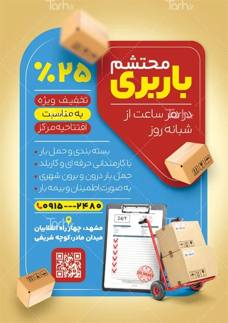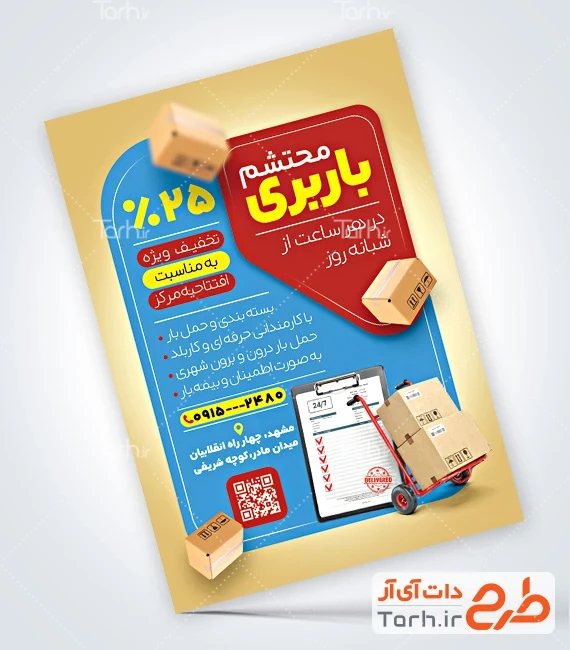 دانلود تراکت قابل ویرایش باربری با عکس جعبه کد فایل 2537894