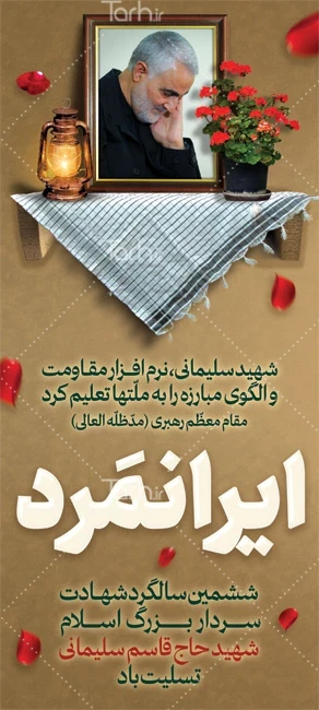 دانلود استند سالگرد شهادت سردار سلیمانی دارای شعار ایرانمرد کد فایل 2568914