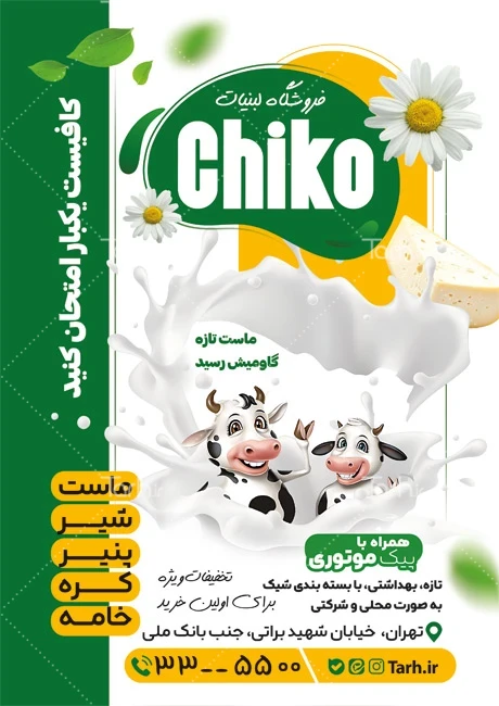 نمونه تراکت خام لبنیاتی شامل وکتور گاو کد فایل 2584367