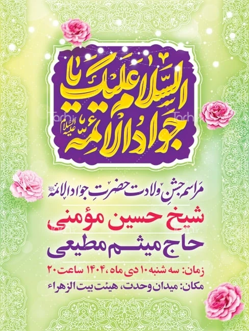 پوستر خام اطلاعیه جشن ولادت امام جواد به صورت لایه باز کد فایل 2607195