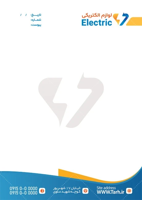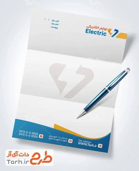 طرح لایه باز سربرگ لوازم الکتریکی با فرمت psd و قابل ویرایش در نرمافزار فتوشاپ بهصورت لایه باز توسط تیم طراحان طرح دات آی آر طراحی شده است. در طرح لایه باز سربرگ کالای برق از المانهای باکیفیت و متناسب با استاندارد چاپ استفادهشده، همچنین نکات مهم در طرح سربرگ خام فروشگاه لوازم الکتریکی مانند رنگبندی، رعایت حاشیه، فاصلهها، فضای کافی برای درج متن، سایز و نوع فونت مناسب طراحی سربرگ و ... رعایت گردیده است. سربرگ لایه باز لوازم الکتریکی ساختمان شامل محل جایگذاری مشخصات میباشد که المانهای استفادهشده در نمونه سربرگ کالای برق قابلیت ویرایش، جابهجایی و تغییر سایز را دارا بوده و شما میتوانید متناسب باسلیقه خودتان طرح سربرگ لوازم الکتریکی را ویرایش نمایید، همچنین با تغییر لوگو و متنها میتوانید طرح سربرگ فروشگاه لوازم برقی را به طرح سربرگ کسب و کار مد نظر خود شخصی سازی نمایید. در اسناد و نامههای اداری و تجاری، سربرگ به عنوان وسیلهای برای نمایش اطلاعاتی مانند نام و لوگو یک شرکت یا سازمان، عنوان سند، تاریخ، شماره صفحه و اطلاعات تماس ( شماره تلفن، آدرس پستی، وبسایت و ایمیل) به کار میرود. این اطلاعات به دریافتکننده کمک میکند تا به راحتی با شرکت یا سازمان تماس بگیرد یا از منابع اطلاعاتی بیشتری بهره برداری کند.