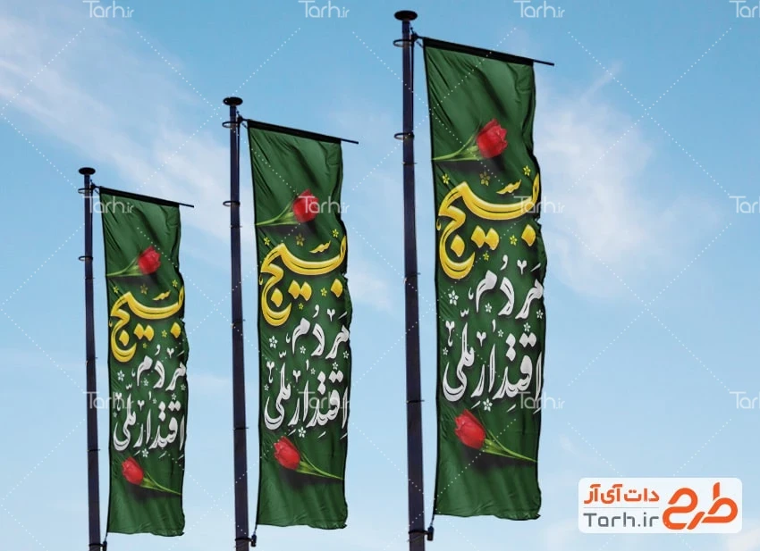 طرح پرچم میله ای آغاز هفته بسیج با تایپوگرافی بسیج مردم اقتدار ملی کد فایل 2618439