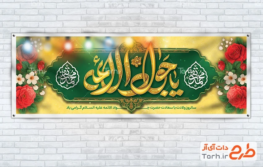 طرح آماده پلاکارد ولادت امام جواد با فرمت psd و قابل ویرایش در نرم افزار فتوشاپ به صورت لایه باز توسط تیم طراحان طرح دات آی آر طراحی شده است. در طرح لایه باز ولادت امام جواد از تصاویر و المان های با کیفیت و متناسب با استاندارد چاپ استفاده گردیده است. طرح بنر ولادت امام جواد شامل خوشنویسی یا جواد الائمه، محمدتقی و وکتور گل میباشد که المان های استفاده شده در بنر لایه باز ولادت امام جوادالائمه قابلیت ویرایش، جابه جایی و تغییر سایز را دارا بوده و شما می توانید متناسب با سلیقه خودتان طرح ولادت امام جواد را ویرایش نمایید.