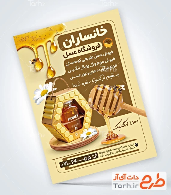 فایل لایه باز تراکت عسل فروشی دارای عکس شیشه عسل کد فایل 2630158