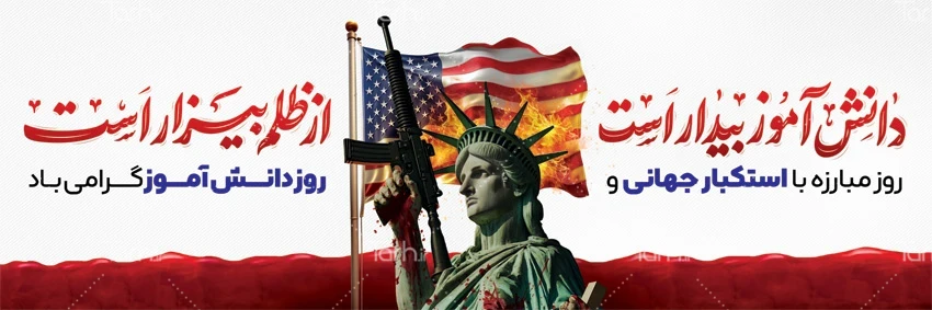 طرح بنر پلاکارد 13 آبان با فرمت psd و قابل ویرایش در نرم افزار فتوشاپ به صورت لایه باز توسط تیم طراحان طرح دات آی آر طراحی شده است. در طرح لایه باز بنر 13 آبان از تصاویر و المان های با کیفیت و متناسب با استاندارد چاپ استفاده گردیده است. طرح لایه باز بنر روز دانش آموز شامل خوشنویسی دانش آموز بیدار است از ظلم بیزار است و عکس مجسمه آزادی با تفنگ می باشد که المان های استفاده شده در طرح بنر روز دانش آموز قابلیت ویرایش، جابه جایی و تغییر سایز را دارا بوده و شما می توانید متناسب با سلیقه خودتان طرح دانش آموز را ویرایش نمایید.