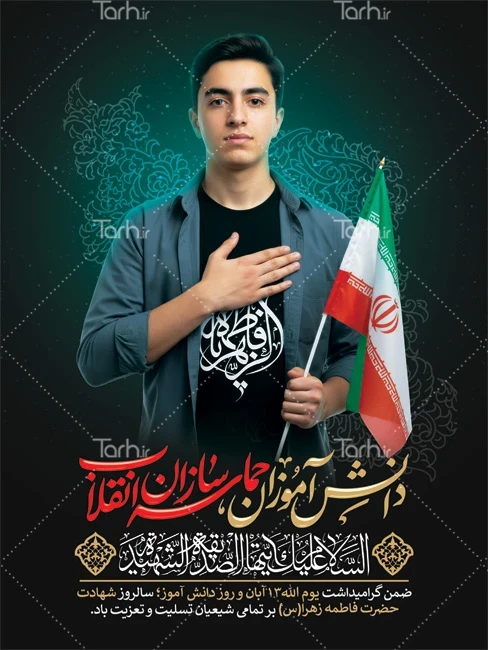 طرح بنر 13 آبان و شهادت حضرت فاطمه شامل عکس دانش آموز با لباس مشکی کد فایل 2637084