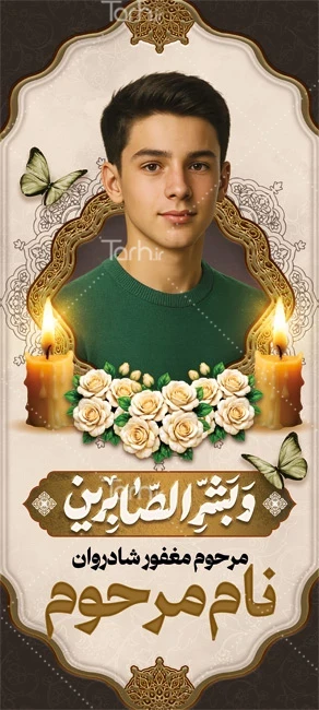 طرح خام بنر ایستاده عکس مرحوم دارای خوشنویسی و بشرالصابرین کد فایل 2645739