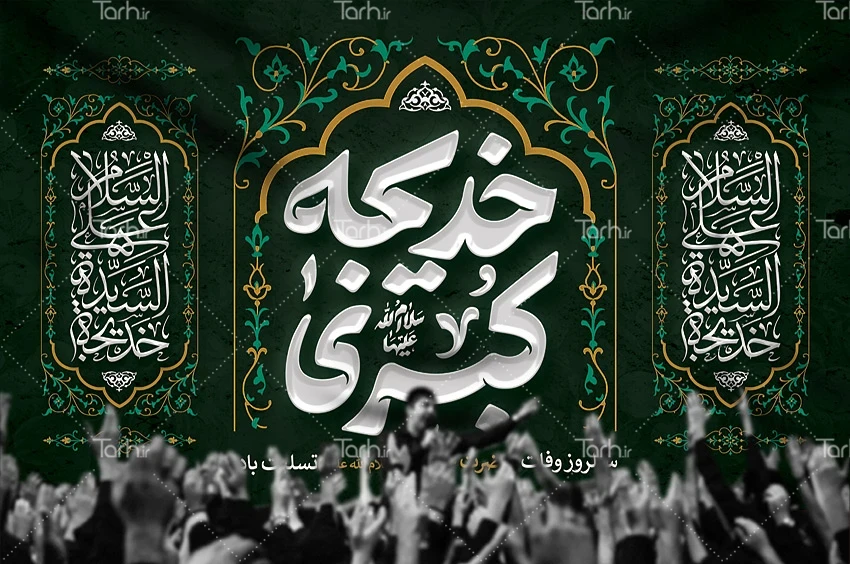 دانلود بنر پشت منبری وفات حضرت خدیجه با فرمت psd و قابل ویرایش در نرم افزار فتوشاپ به صورت لایه باز توسط تیم طراحان طرح دات آی آر طراحی شده است. در بنر لایه باز رحلت حضرت خدیجه کبری از تصاویر و المان های با کیفیت و متناسب با استاندارد چاپ استفاده گردیده است. بنر پشت منبری وفات حضرت خدیجه شامل خوشنویسی خدیجه کبری، السلام علی سیده الخدیجه می باشد که المان های استفاده شده در بنر لایه باز وفات حضرت خدیجه کبری قابلیت ویرایش، جابه جایی و تغییر سایز را دارا بوده و شما می توانید متناسب با سلیقه خودتان طرح دکور کتیبه رحلت حضرت خدیجه کبری را ویرایش نمایید.