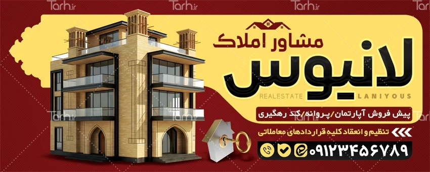 طرح تابلو تبلیغاتی مشاور املاک با قابلیت ویرایش المان ها کد فایل 2689315
