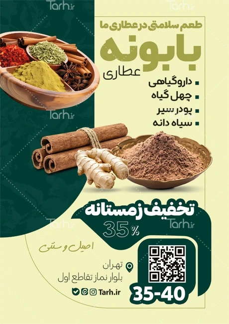 طرح تراکت لایه باز فروش گیاهان دارویی دارای عکس زنجبیل و چوب دارچین کد فایل 2691530