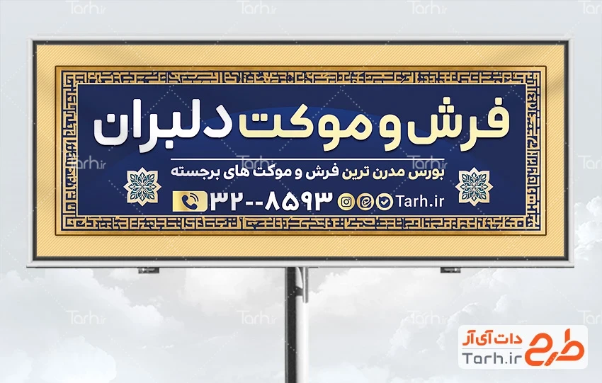 طرح تابلو تبلیغاتی نمایشگاه فرش با فرمت psd و قابل ویرایش در نرمافزار فتوشاپ بهصورت لایه باز توسط تیم طراحان طرح دات آی آر طراحی شده است. در طرح لایه باز بنر فروشگاه فرش از تصاویر و المانهای باکیفیت و متناسب با استاندارد چاپ استفادهشده، همچنین نکات مهم در طرح بنر مغازه مانند رنگبندی، رعایت حاشیه، فاصلهها، سایز و نوع فونت مناسب طراحی تابلو مشاغل و ... رعایت گردیده است. طرح بنر فروشگاه فرش شامل عکس قالی میباشد که المانهای استفادهشده در طرح تابلو فرش فروشی قابلیت ویرایش، جابهجایی و تغییر سایز را دارا بوده و شما میتوانید متناسب باسلیقه خودتان طرح بنر تبلیغاتی فروشگاه فرش را ویرایش نمایید، همچنین با تغییر تصاویر و متنها میتوانید طرح تابلو گالری فرش را به طرح تابلوی شغل موردنظر خود تبدیل نمایید.