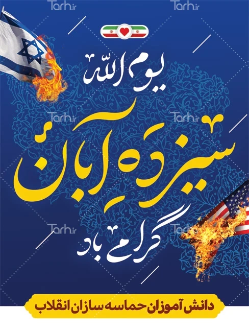 طرح آماده پوستر 13 آبان با تایپوگرافی یوم الله سیزده آبان گرامی باد کد فایل 2706498