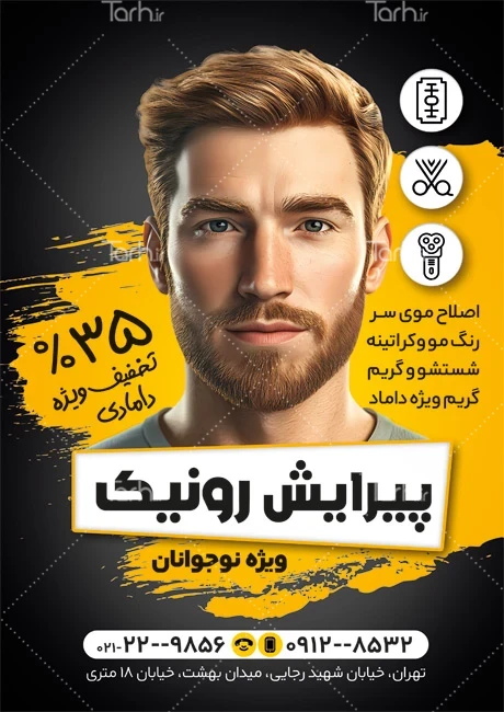 دانلود تراکت آماده آرایشگاه مردانه با عکس مدل مرد کد فایل 2706854