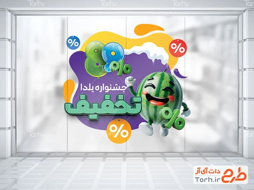 فایل استیکر شیشه فروش ویژه یلدایی با فرمت psb و قابل ویرایش در نرم افزار فتوشاپ به صورت لایه باز توسط تیم طراحان طرح دات آی آر طراحی شده است. در طرح استیکر تبلیغاتی فروش ویژه یلدایی از تصاویر و المان های با کیفیت و متناسب با استاندارد چاپ استفاده شده، همچنین نکات مهم در طرح لایه باز استیکر تخفیف ویژه یلدایی مانند رنگ بندی، رعایت حاشیه، فاصله ها، سایز و نوع فونت مناسب طراحی استیکر و ... رعایت گردیده است. طرح برچسب روی شیشه فروش ویژه شامل تصویرسازی هندوانه می باشد و المان های استفاده شده در طرح استیکر تخفیف ویژه یلدا قابلیت ویرایش، جابه جایی و تغییر سایز را دارا بوده و شما می توانید متناسب با سلیقه خودتان طرح برچسب دیواری فروش ویژه یلدا را ویرایش نمایید، همچنین با تغییر تصاویر و متن ها می توانید طرح استیکر تخفیف ویژه یلدایی را به طرح استیکر شغل مورد نظر خود تبدیل نمایید.