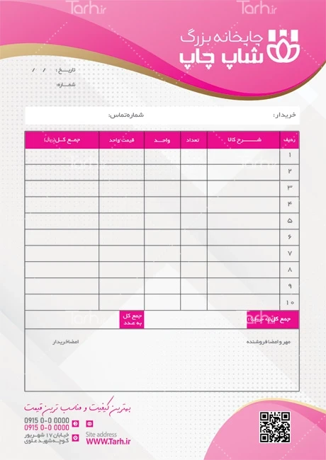 طرح فاکتور خام چاپخانه با رنگبندی صورتی کد فایل 2749635