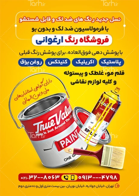 فایل تراکت رنگ فروشی با فرمت psd و قابل ویرایش در نرمافزار فتوشاپ بهصورت لایه باز توسط تیم طراحان طرح دات آی آر طراحی شده است. در نمونه تراکت رنگ فروشی از تصاویر و المانهای باکیفیت و متناسب با استاندارد چاپ استفادهشده، همچنین نکات مهم در طرح تراکت رنگ فروشی مانند رنگبندی، رعایت حاشیه، فاصلهها، فضای کافی برای درج متن، سایز و نوع فونت مناسب طراحی تراکت و ... رعایت گردیده است. طرح لایه باز تراکت فروشگاه رنگ ساختمان شامل عکس قوطی رنگ و قلم مو میباشد که المانهای استفادهشده در طرح تراکت فروشگاه رنگ ساختمان قابلیت ویرایش، جابهجایی و تغییر سایز را دارا بوده و شما میتوانید متناسب باسلیقه خودتان تراکت لایه باز رنگ فروشی را ویرایش نمایید، همچنین با تغییر تصاویر و متنها میتوانید طرح تراکت رنگ و نقاشی ساختمان را به طرح تراکت کسب و کار مد نظر خود شخصی سازی نمایید.