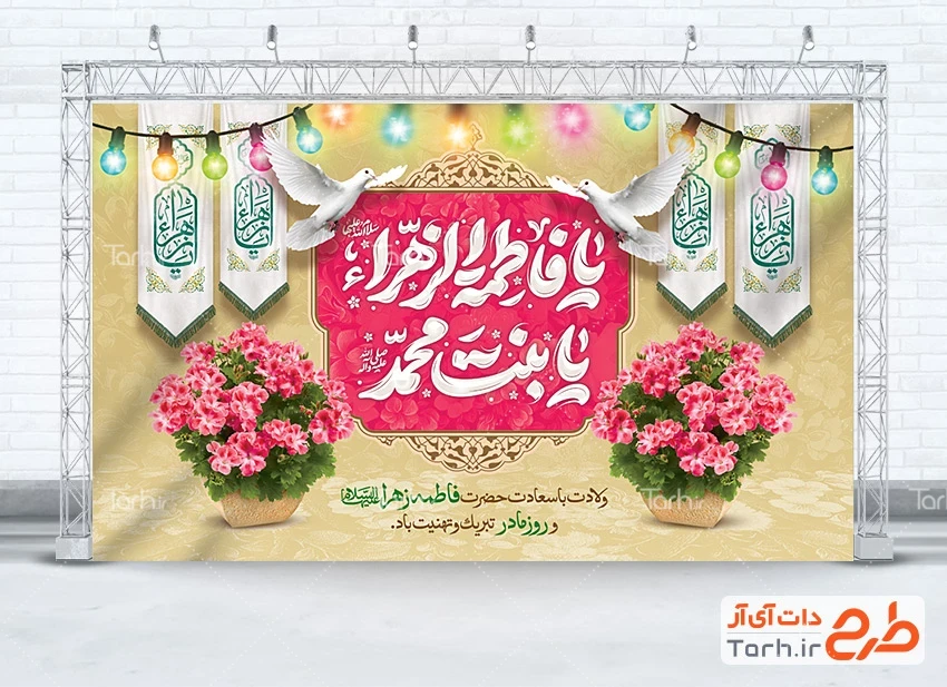 طرح دکور پشت سن ولادت حضرت فاطمه با خوشنویسی یا فاطمه الزهرا یا بنت محمد کد فایل 2759368
