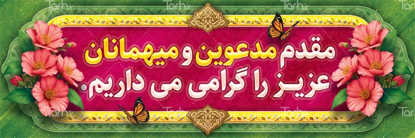 طرح لایه باز پلاکارد خوش آمدگویی با فرمت psd و قابل ویرایش در نرم افزار فتوشاپ به صورت لایه باز توسط تیم طراحان طرح دات آی آر طراحی شده است. در طرح لایه باز بنر خیر مقدم از تصاویر و المان های با کیفیت و متناسب با استاندارد چاپ استفاده گردیده است. طرح بنر خیر مقدم شامل وکتور گل می باشد که المان های استفاده شده در بنر خیر مقدم مدعوین قابلیت ویرایش، جابه جایی و تغییر سایز را دارا بوده و شما می توانید متناسب با سلیقه خودتان طرح خیرمقدم را ویرایش نمایید.