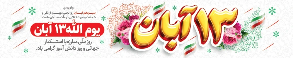 طرح بنر بیلبورد 13 آبان با فرمت psd و قابل ویرایش در نرم افزار فتوشاپ به صورت لایه باز توسط تیم طراحان طرح دات آی آر طراحی شده است. در طرح بنر بیلبورد 13 آبان از تصاویر و المان های با کیفیت و متناسب با استاندارد چاپ استفاده گردیده است. بنر تبریک 13 آبان و روز دانش آموز شامل خوشنویسی 13 آبان و وکتور گل و پرچم ایران می باشد که المان های استفاده شده در طرح بنر 13 آبان و روز دانش آموز قابلیت ویرایش، جابه جایی و تغییر سایز را دارا بوده و شما می توانید متناسب با سلیقه خودتان بنر لایه باز روز دانش آموز و 13 آبان را ویرایش نمایید.