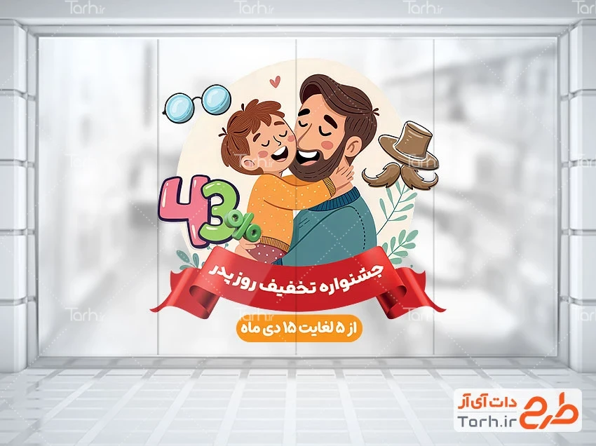طرح برچسب شیشه تخفیف روز پدر شامل تصویرسازی پدر و فرزند کد فایل 2835491