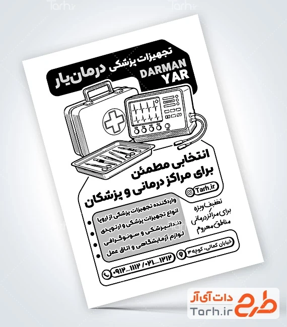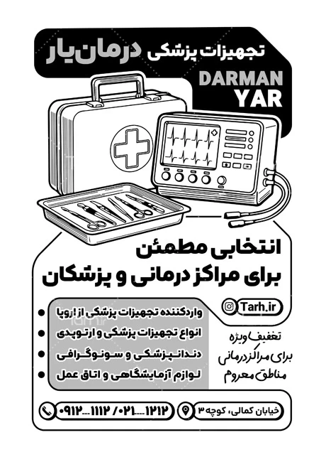 ابعاد قابل چاپ طرح تراکت سیاه سفید تجهیزات پزشکی و کاربرد آن