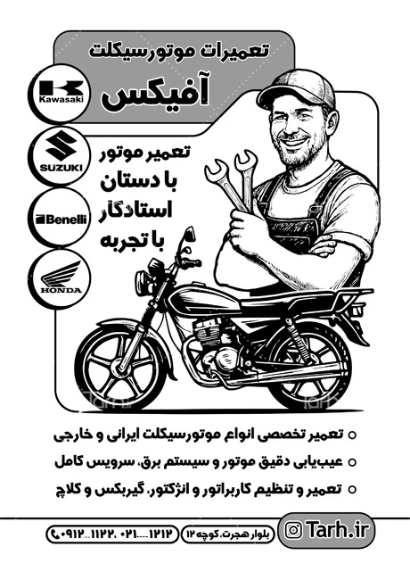 دانلود تراکت سیاه سفید تعمیرگاه موتورسیکلت با وکتور تعمیرکار کد فایل 2894067