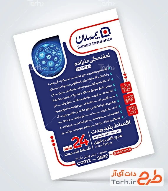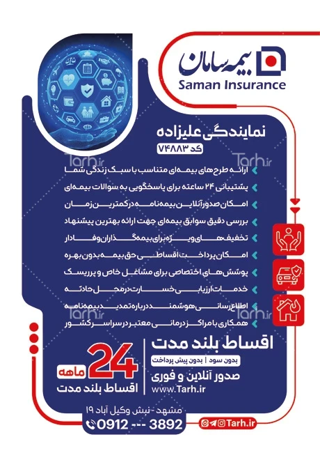طرح آماده تراکت بیمه سامان دارای رنگبندی سورمه ای کد فایل 2895413