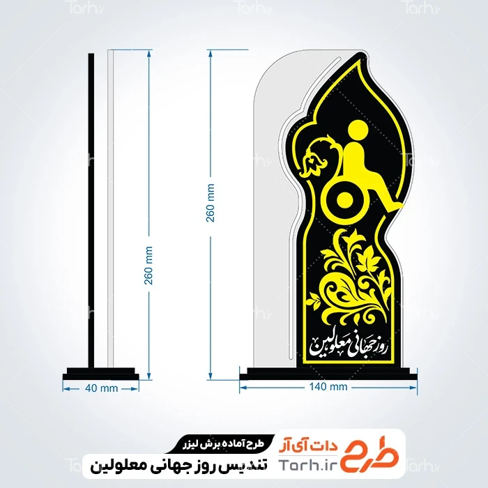 طرح آماده برش لیزری تندیس روز جهانی معلولین بر مبنای متریال ام.دی.اف 2.7 میل موجود در بازار ایران، با نرم افزار Corel Draw به صورت لایه باز و قابل ویرایش توسط تیم طراحان طرح دات آی آر طراحی شده است. در طرح آماده برش لیزری استند معلولین نکات مهم طراحی لیزر مانند رعایت ضخامت چوب، ابعاد استاندارد طرح و چیدمان درست برای کمترین پرتی رعایت گردیده است. طرح برش لیزری تندیس معلولین، آماده اجرا توسط دستگاه های برش، سی ان سی (CNC)، حکاکی لیزر و حکاکی روی چوب میباشد. شما میتوانید از طرح لیزر روز معلولین جسمی حرکتی جهت تولید انواع تندیس و استند روز جهانی معلولین به عنوان هدیه در مراسمات روز معلولین جسمی حرکتی استفاده کنید.