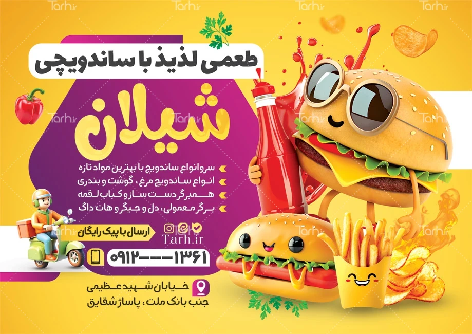 - دسته بندی : تراکت ساندویچ، فست فود و پیتزا