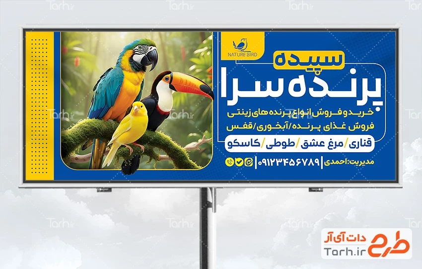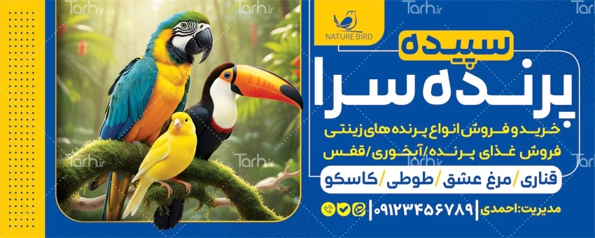 طرح خام بنر تبلیغاتی پرنده فروشی دارای عکس پرنده کد فایل 3014826