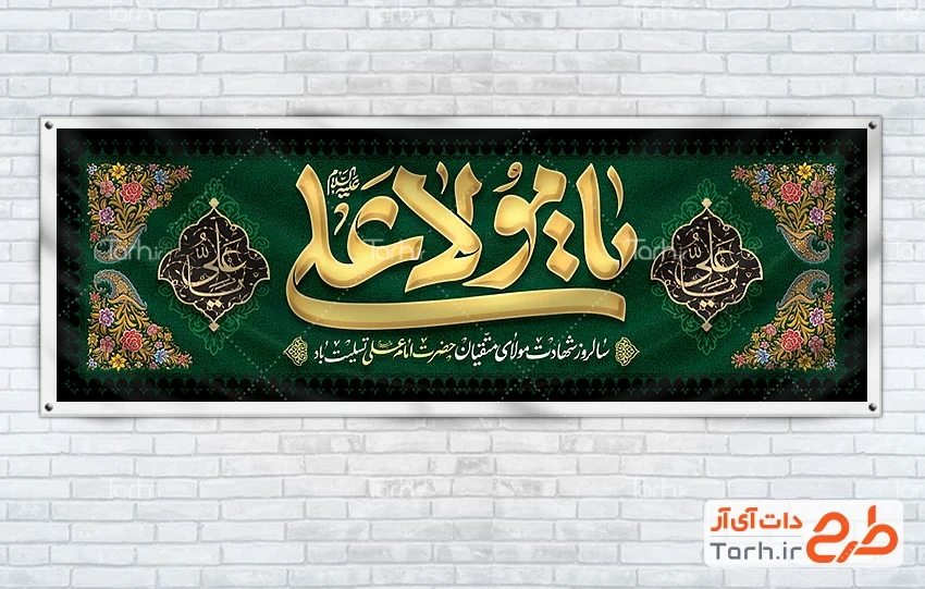 دانلود طرح پلاکارد شهادت امام علی دارای تایپوگرافی یا مولا علی کد فایل 3026915