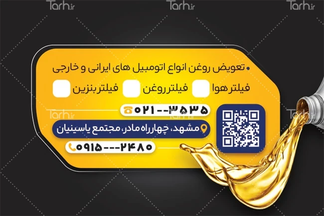 دانلود کارت ویزیت تعویض روغنی با قابلیت ویرایش المان ها کد فایل 3028917